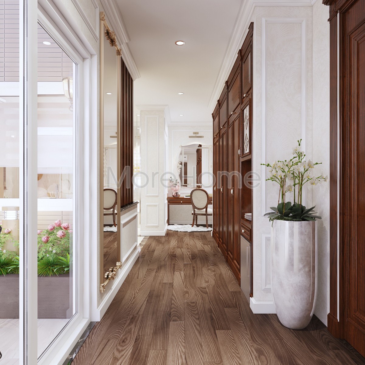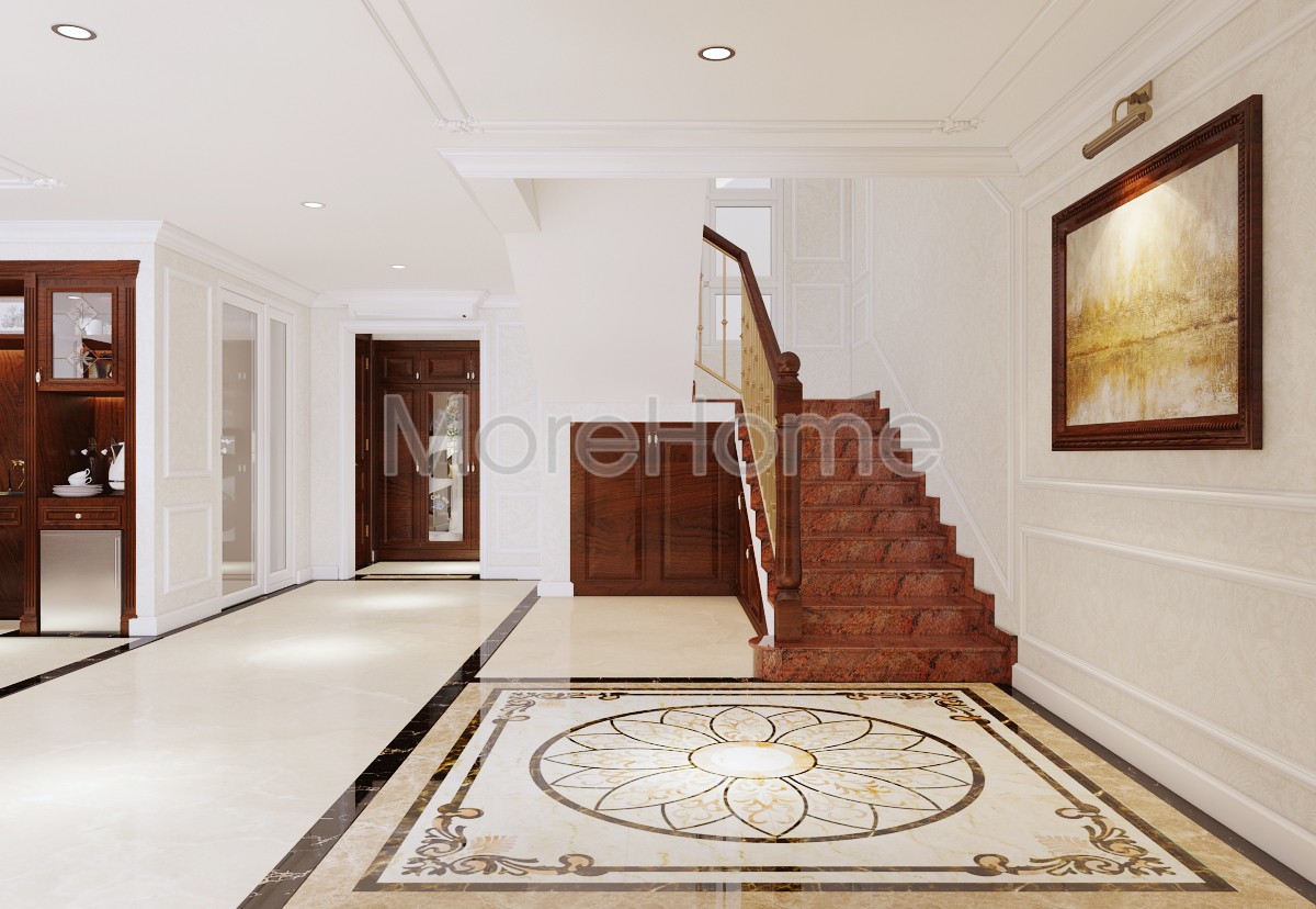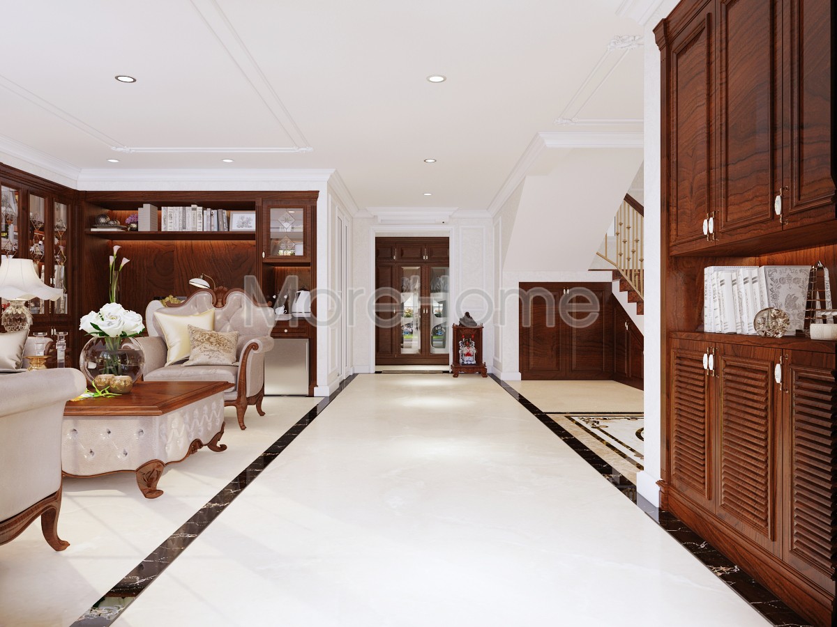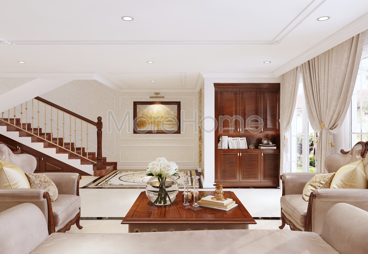 Phong cách cổ điển luôn mang đến một nét đẳng cấp riêng cho không gian nhà. Thiết kế biệt thự tân cổ điển này đã thể hiện được hết những ưu điểm mà phong cách cổ điển có được. Đến với mẫu thiết kế nội thất biệt thự cao cấp Phổ Quang bạn sẽ được chiêm ngưỡng những chi tiết đường nét mềm mại trong nội thất tân cổ điển àm KTS Morehome mang lại.