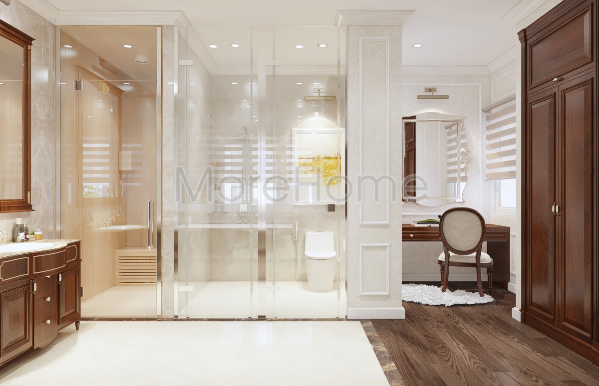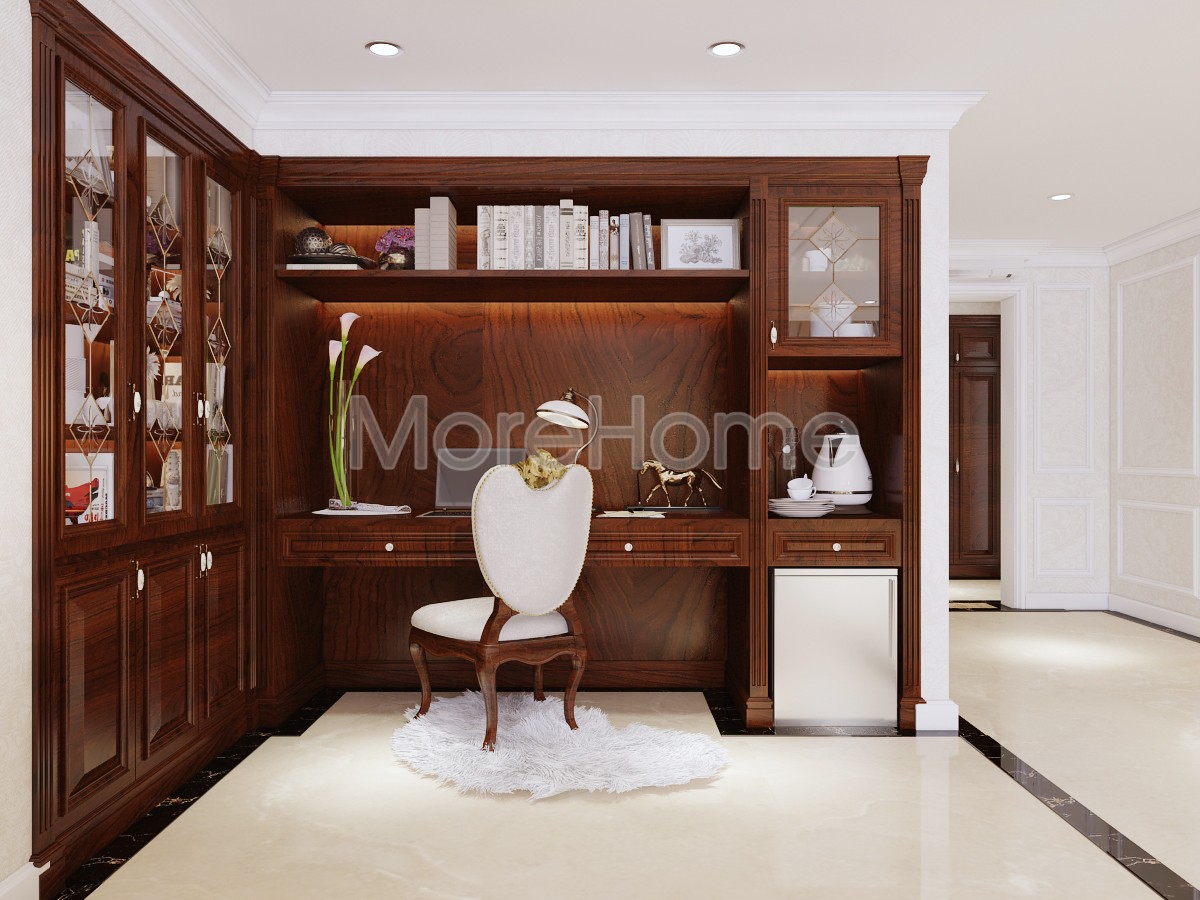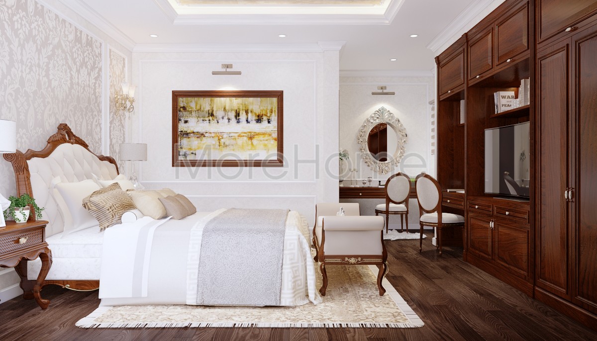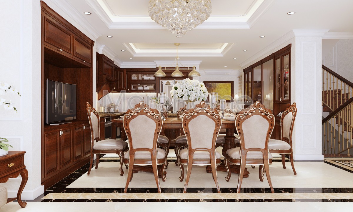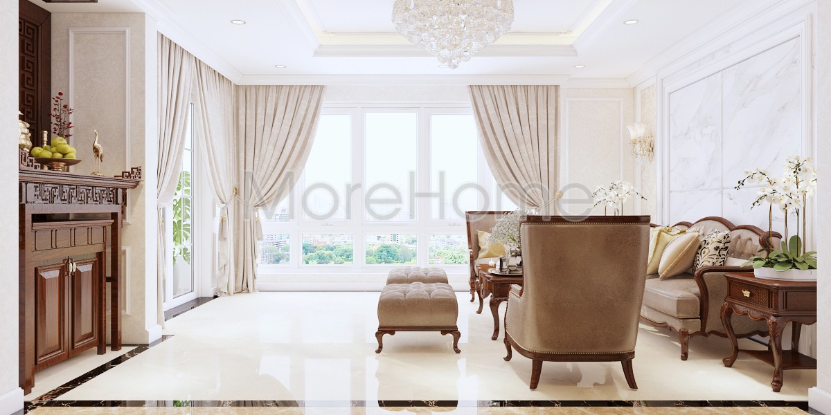 Phong cách cổ điển luôn mang đến một nét đẳng cấp riêng cho không gian nhà. Thiết kế biệt thự tân cổ điển này đã thể hiện được hết những ưu điểm mà phong cách cổ điển có được. Đến với mẫu thiết kế nội thất biệt thự cao cấp Phổ Quang bạn sẽ được chiêm ngưỡng những chi tiết đường nét mềm mại trong nội thất tân cổ điển àm KTS Morehome mang lại.