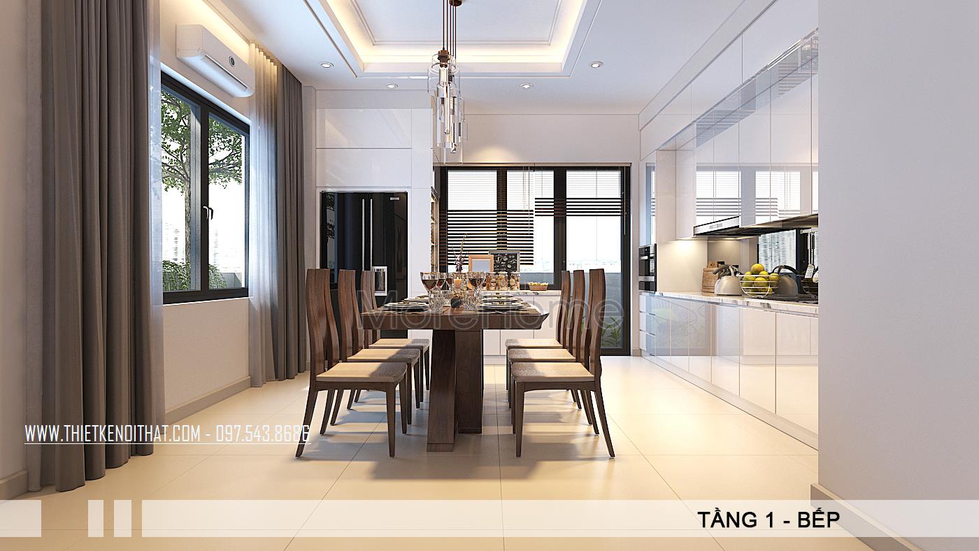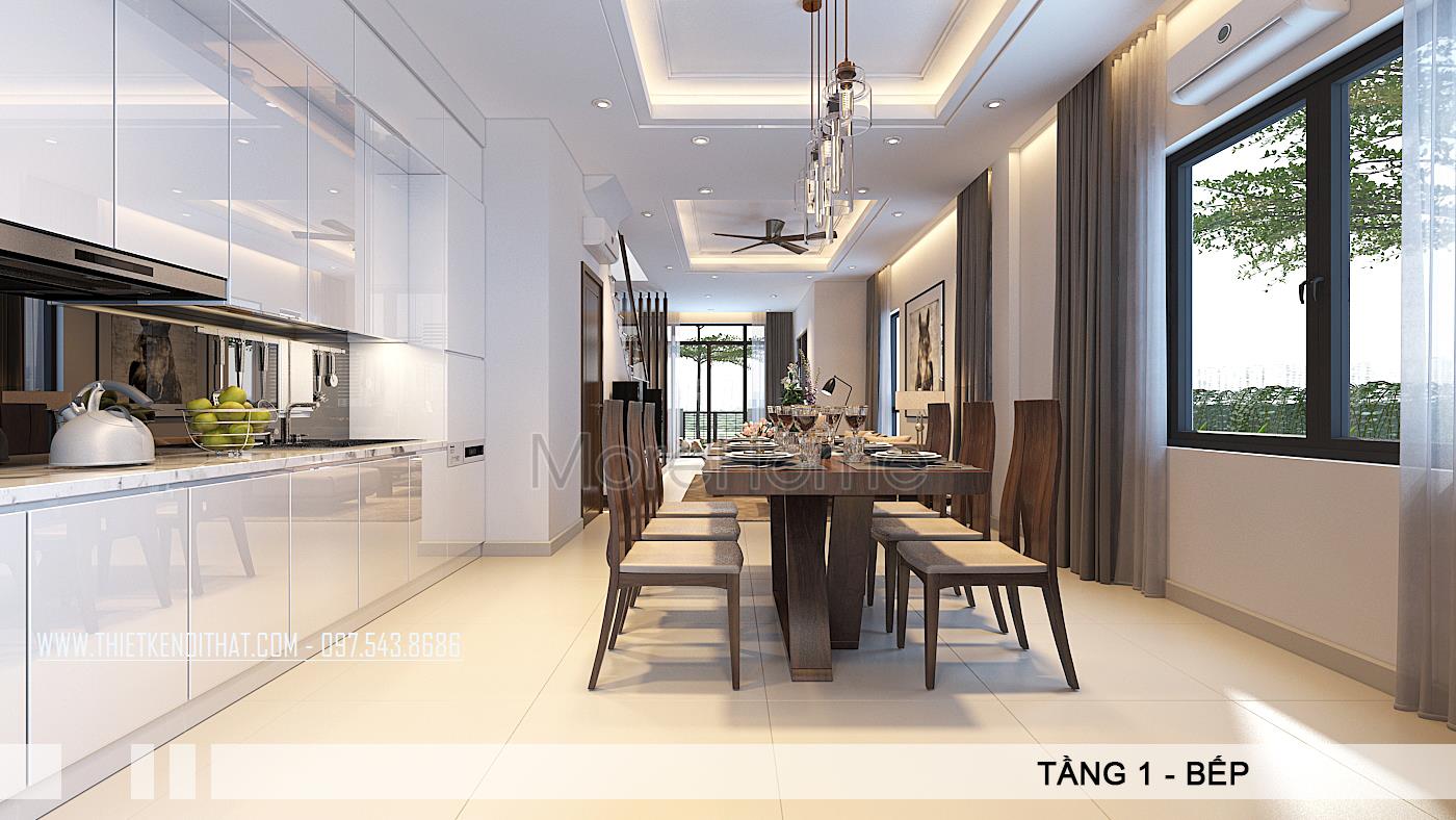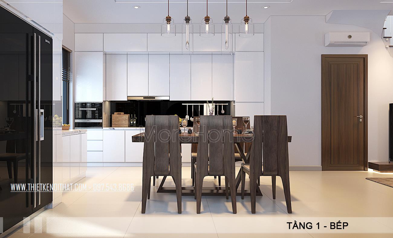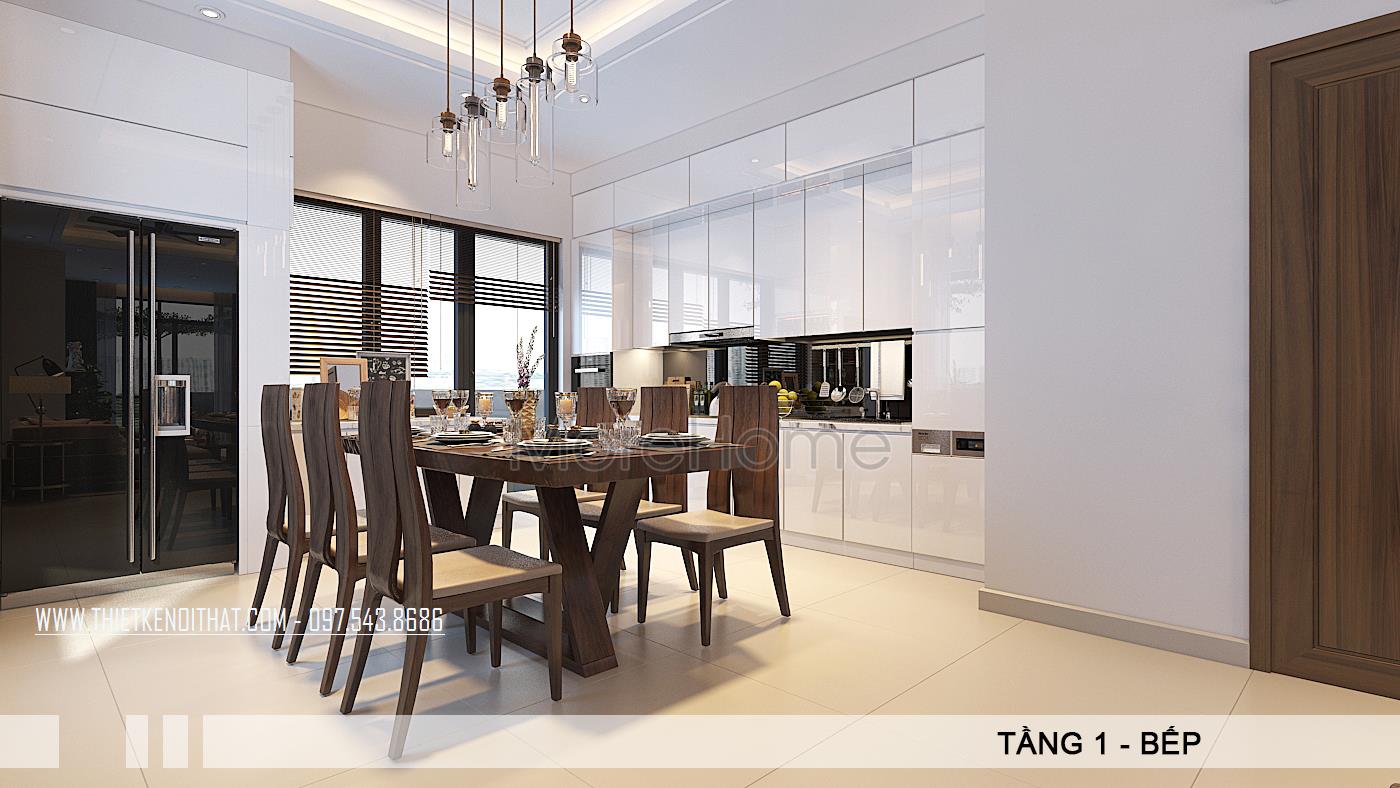 KTS Morehome đã mang đến một không gian bếp tiện nghi, đẳng cấp nhất cho căn hộ biệt thự Vinhomes này. Thiết kế nội thất phòng bếp phải thật tinh tế, tao nhã nhưng cũng thật rộng mở, thoáng đãng và thân thiện, các khoang bếp có thể kết hợp thêm một số đồ gia dụng hiện đại.