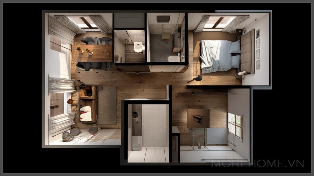 Bước vào căn hộ này, bạn sẽ ngay lập tức cảm nhận được sự hòa quyện tinh tế giữa nét đẹp mộc mạc của phong cách rustic và sự tinh giản của chủ nghĩa tối giản hiện đại. Với diện tích được bố trí thông minh cho 3 phòng ngủ, 2 phòng tắm và một không gian sinh hoạt chung rộng rãi, ngôi nhà này chính là minh chứng hoàn hảo cho việc tối ưu hóa không gian sống mà vẫn giữ được tính thẩm mỹ cao.
