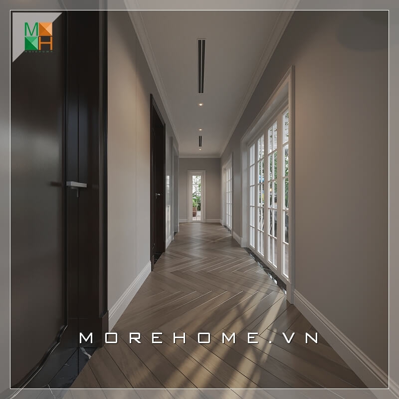 Để ngôi biệt thự, nhà phố tràn ngập ánh sáng, đem đến sức sống nguồn cảm hứng cho mọi thành viên trong gia đình, hành lang được thiết kế sát vách cửa kính vừa trẻ trung lại sang trọng.