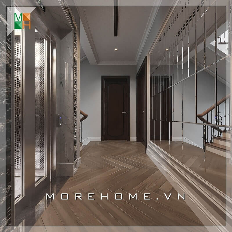 Gương kính nơi hành lang của biệt thự, nhà phố được bố trí cho không gian cảm giác rộng rãi, thoáng đãng.