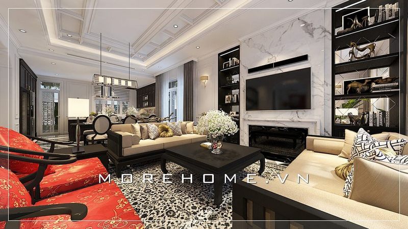 Thiết kế phòng khách biệt thự theo phong cách tân cổ điển sang trọng, đẳng cấp