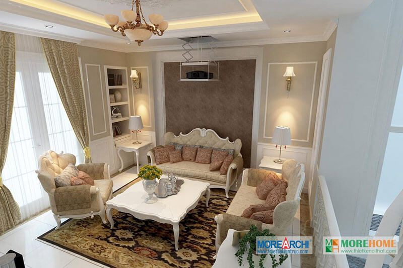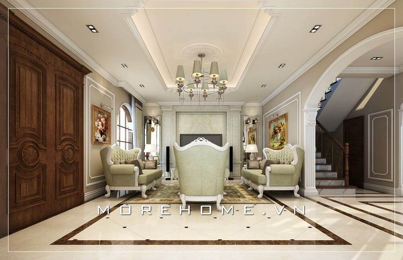 Thiết kế nội thất phòng khách biệt thự tân cổ điển sang trọng, đẳng cấp