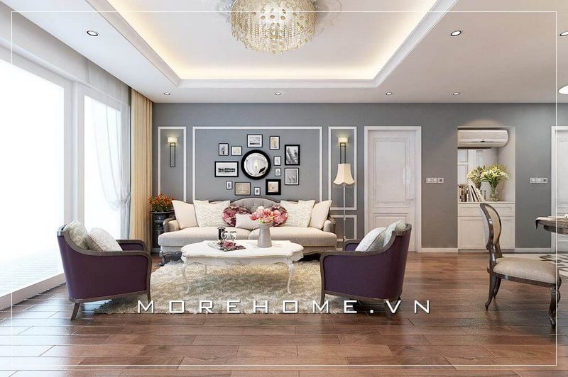 Thiết kế phòng khách tân cổ điển căn hộ chung cư đẹp, sang trọng.